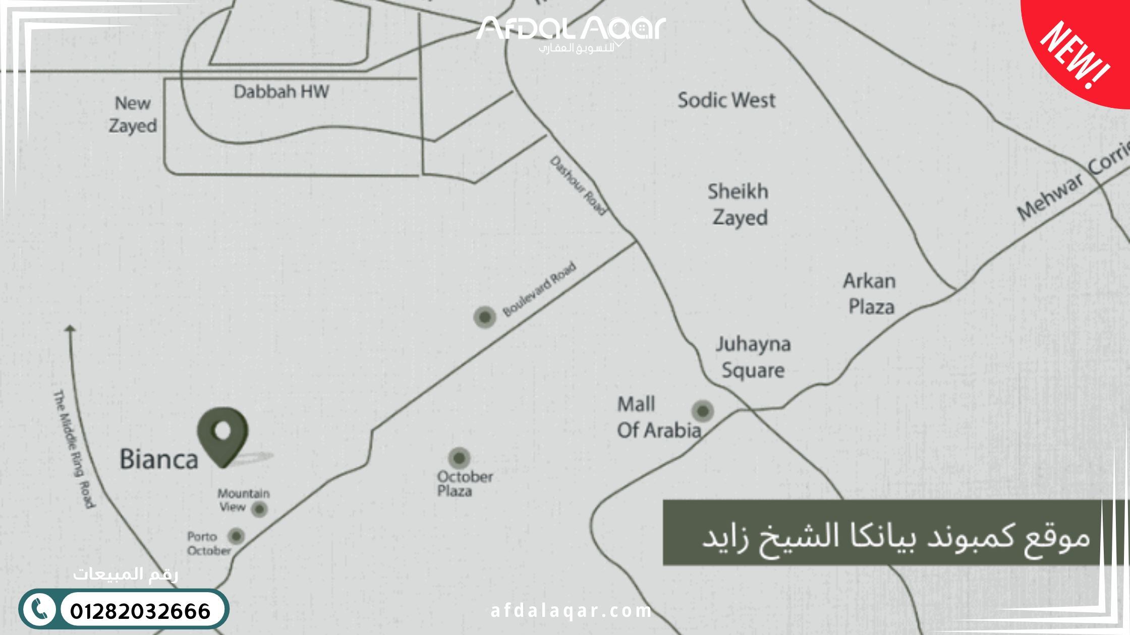 - يبعد كمبوند بيانكا زايد الجديدة 25 دقيقة عن القاهرة الجديدة.